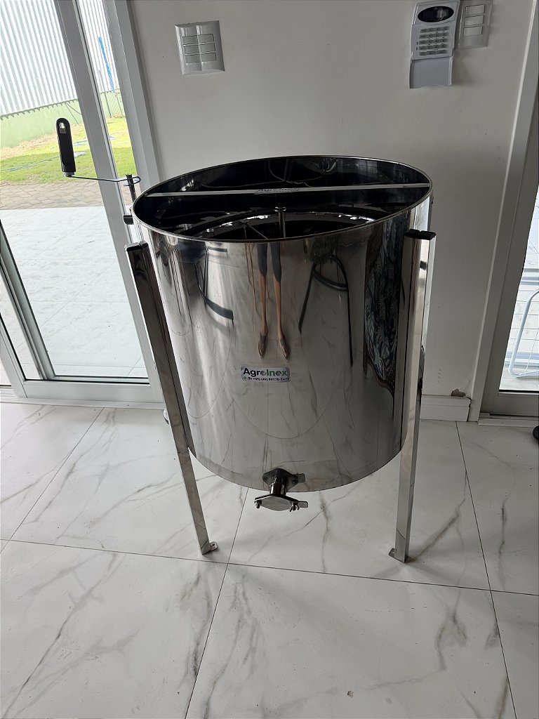 Centrífuga manual de alto desempenho, projetada para extração de mel em larga escala com máxima eficiência. Construção robusta e durável, ideal para apicultores profissionais que exigem resistência, praticidade e alto rendimento.